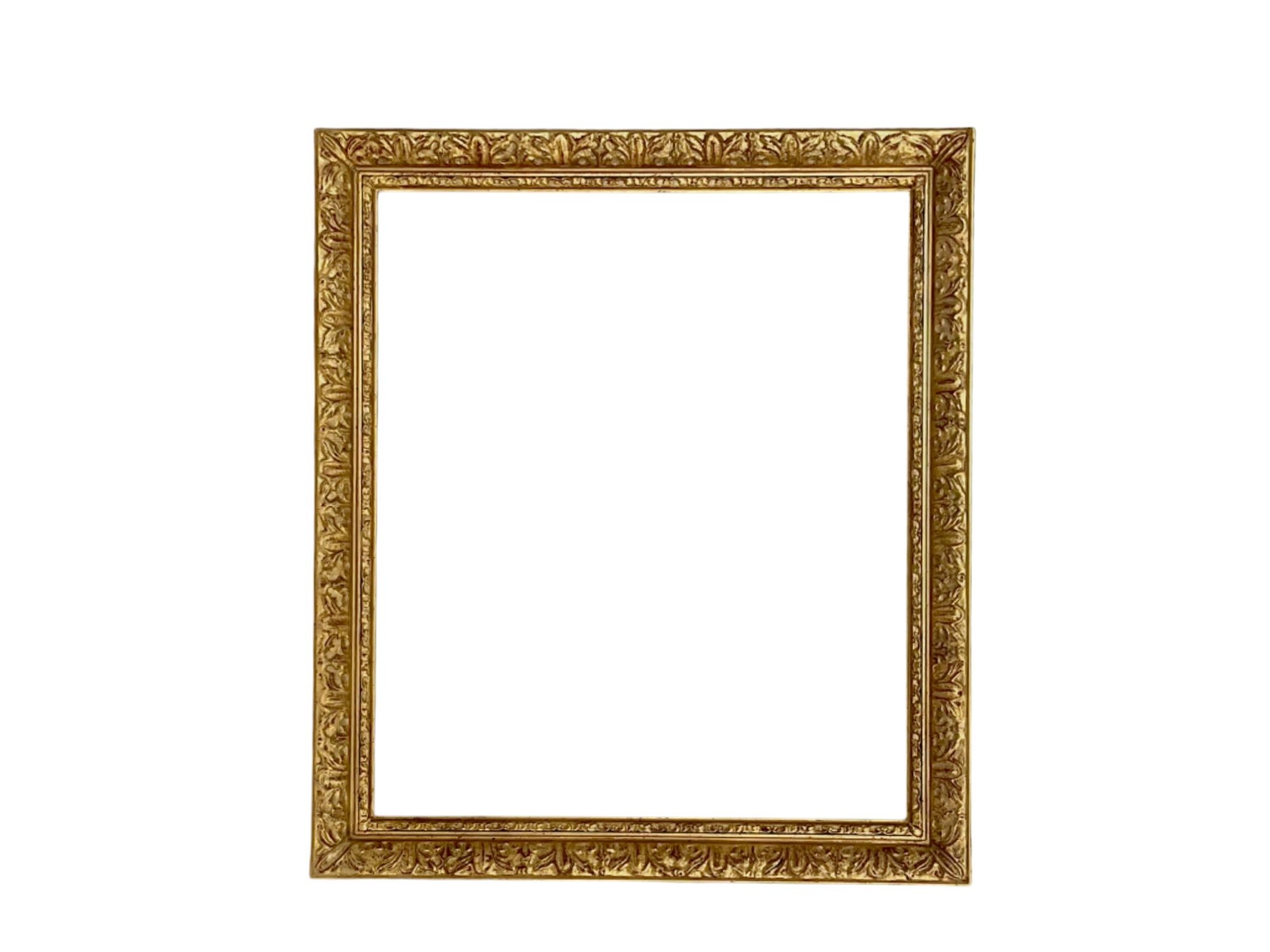 Cadre de style Louis XIII en bois et stuc doré à la feuille d'or